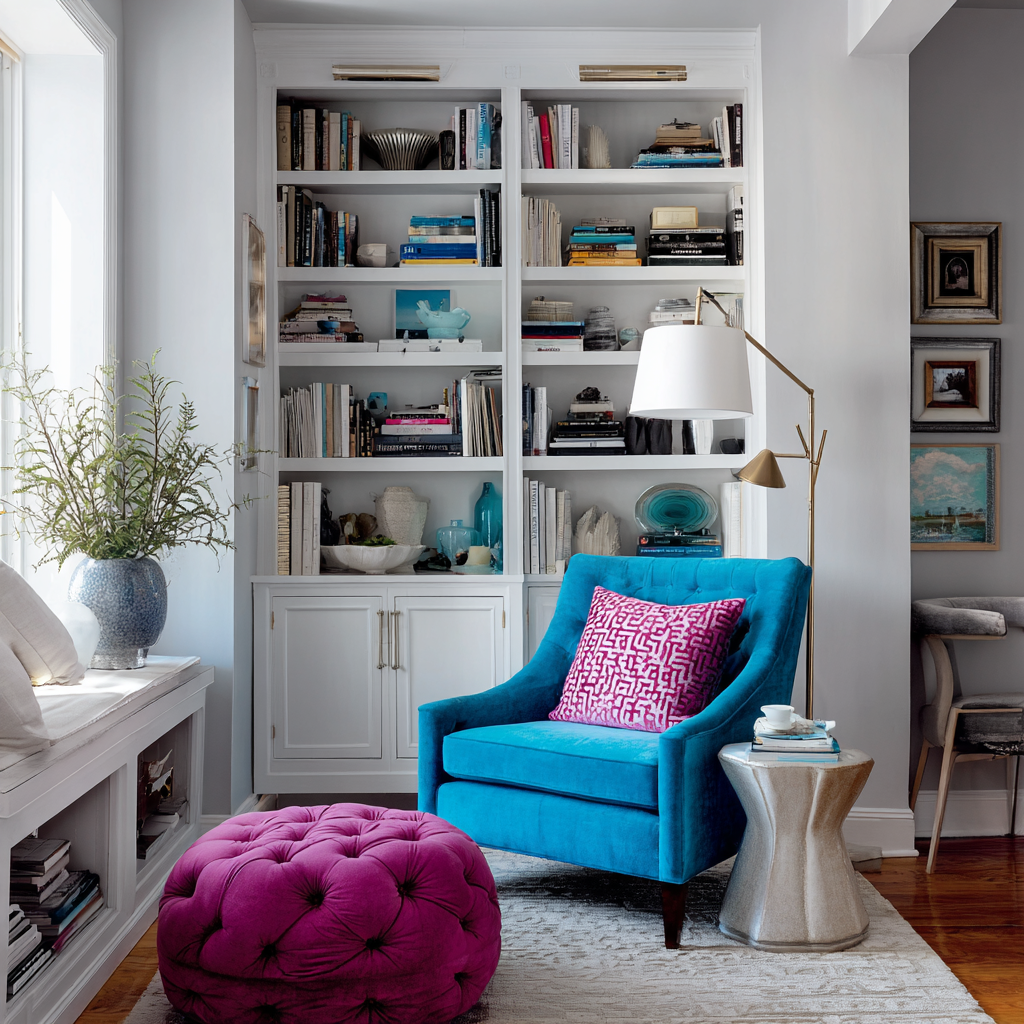Got a small corner that needs style and function? Try a petite tufted chair with matching ottoman. These space-savers work wonders in tiny apartments or awkward nooks. The tufted velvet adds luxury while the separate footrest can slide under the chair when not in use. Pick a neutral color that won’t overwhelm your space but still adds personality to that forgotten corner.