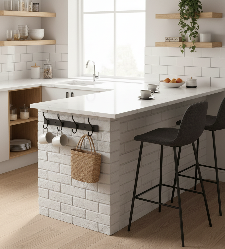 L-shaped and corner breakfast bars slip right into unused spots, making the most of every inch in small kitchens. These setups work as handy room dividers in open layouts and boost seating without hogging space. Shelves or hooks underneath add bonus storage for mugs, dishes, or bags.