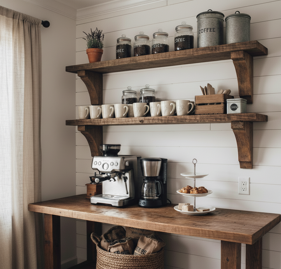 Farmhouse Kitchen Coffee Station Ideas for a Cozy Touch