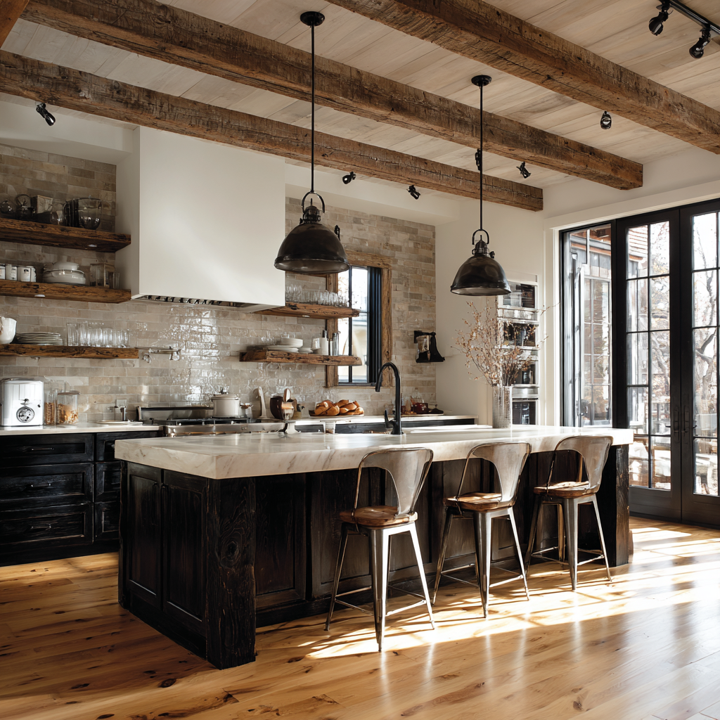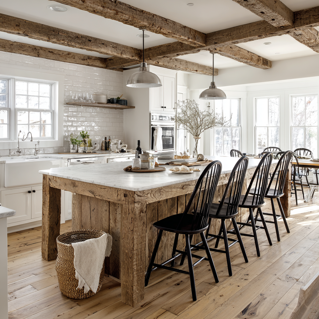 Q: How can I incorporate rustic elements into my modern farmhouse kitchen?