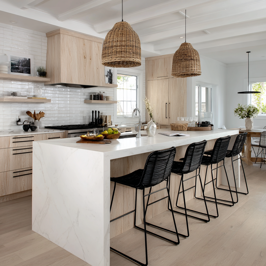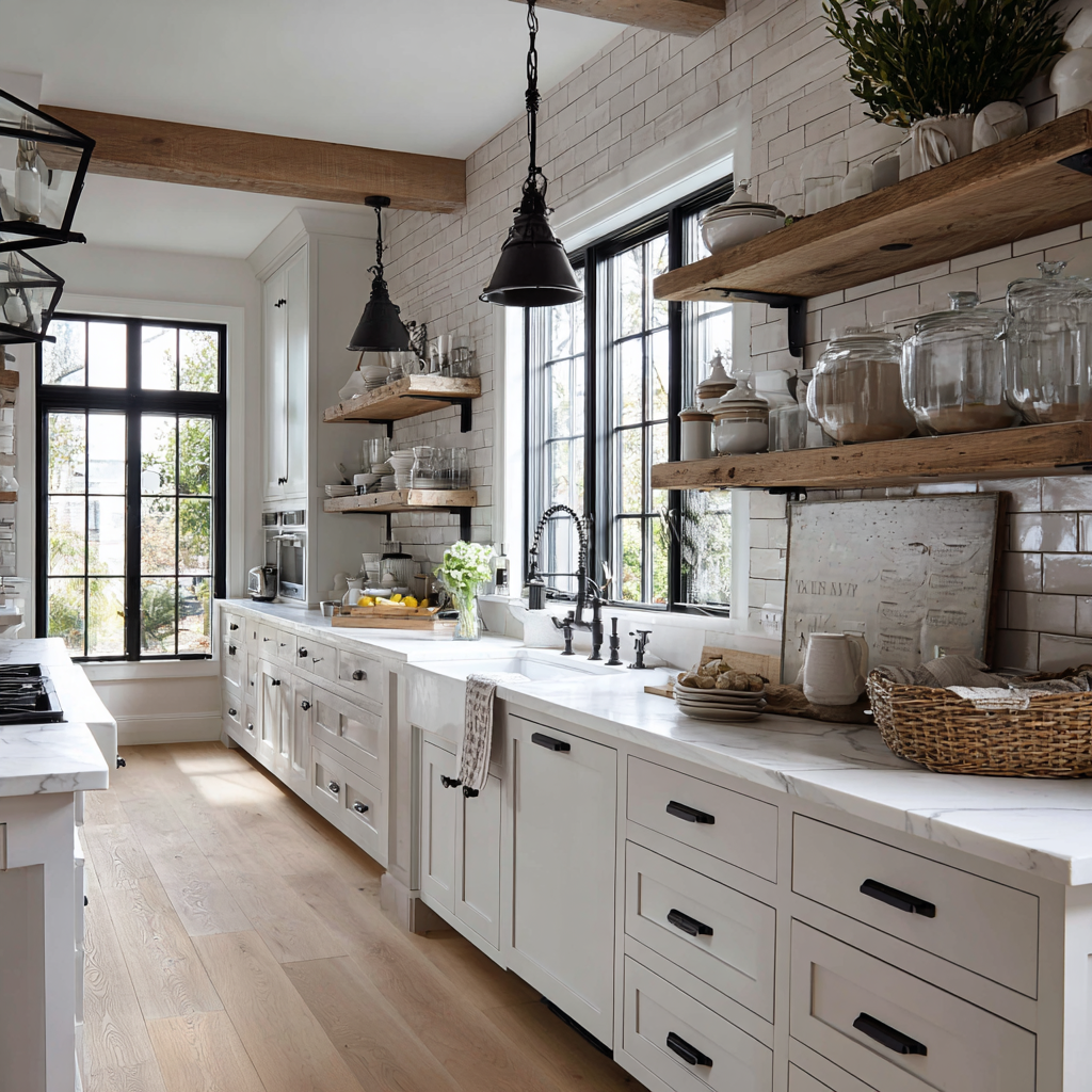 Light wood paired with bright white surfaces gives a modern farmhouse kitchen a soft, airy feeling. This combo keeps things simple and inviting, letting natural textures stand out. The space feels open and clean, with a warmth that never feels cold or plain. It’s a classic look that stays fresh year after year.