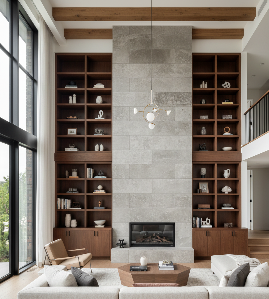 10. Feature Walls and Accent Materials in Split Level Living Rooms