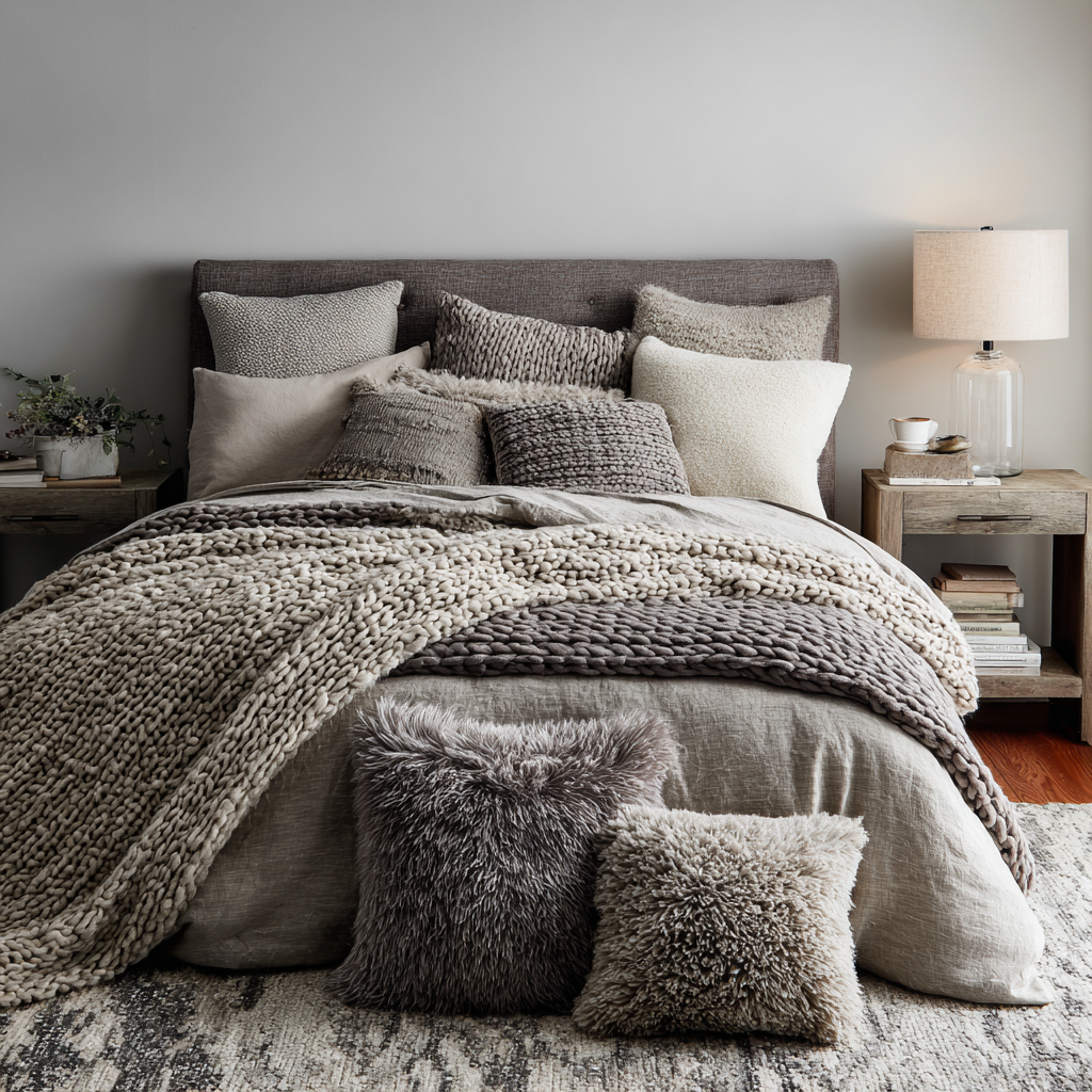 2. Layered Taupe Bedding for Luxurious Texture