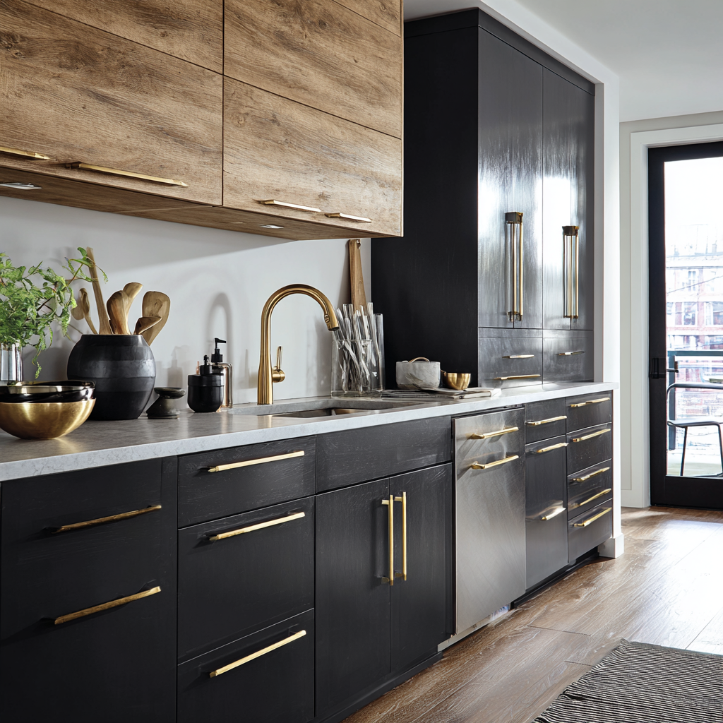 The right hardware for two tone cabinets pulls the whole look together—think brass, gold, or matte black for a touch of polish. Mixing glossy or matte paint with stained wood adds texture and keeps the style fresh. Repeat hardware finishes or accents across your space for a seamless, coordinated vibe.